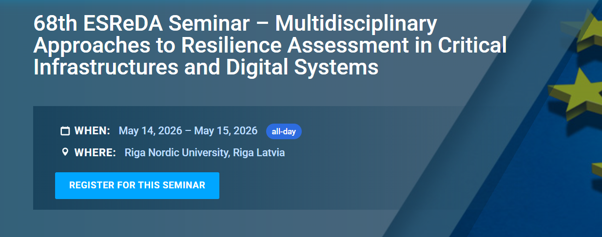 The 68th ESReDA Seminar, entitled:“Multidisciplinary Approaches to Resilience Assessment in Critical Infrastructures and Digital Systems”, will provide a unique forum for exchange among academia, industry, regulators, and technology providers and offers a strategic opportunity to showcase work on digitalization, advanced maintenance, and the resilience of complex systems.